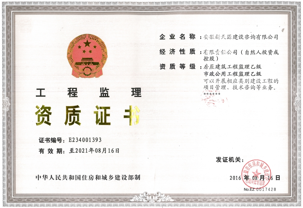 工程監(jiān)理資質(zhì)乙級(jí)